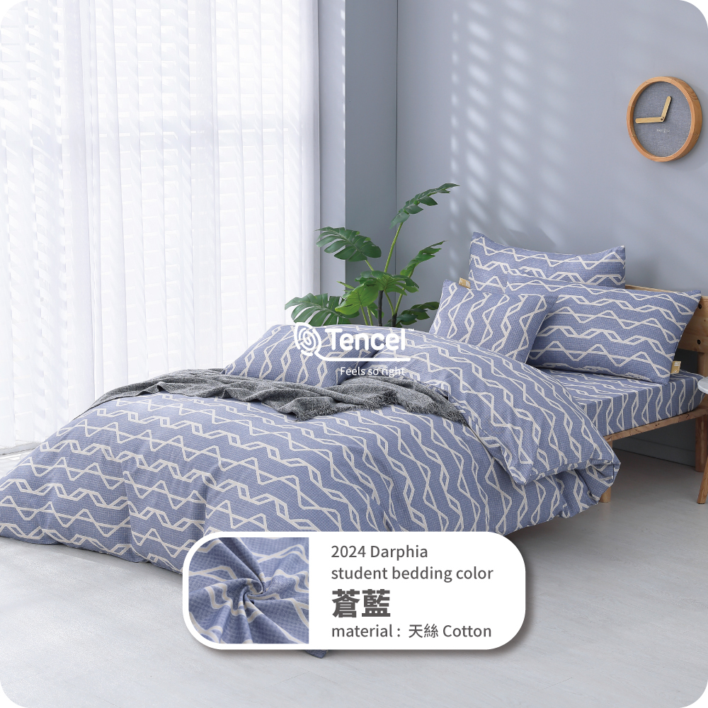 朵法亞 Darphia|翠藍_天絲棉換洗四件套( 床包 + 被套 + 枕套 )_學生租屋住宿_標準單人