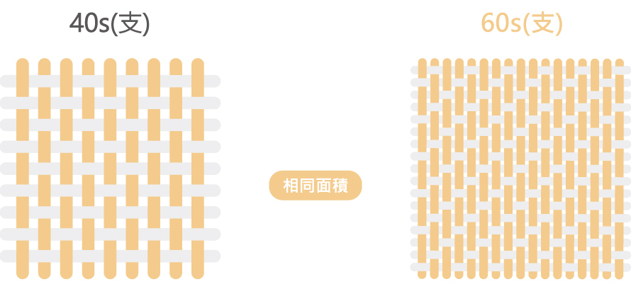 長絨棉因棉纖維較長,在相同面積下需較多線紗,則能織出密度較高的60支