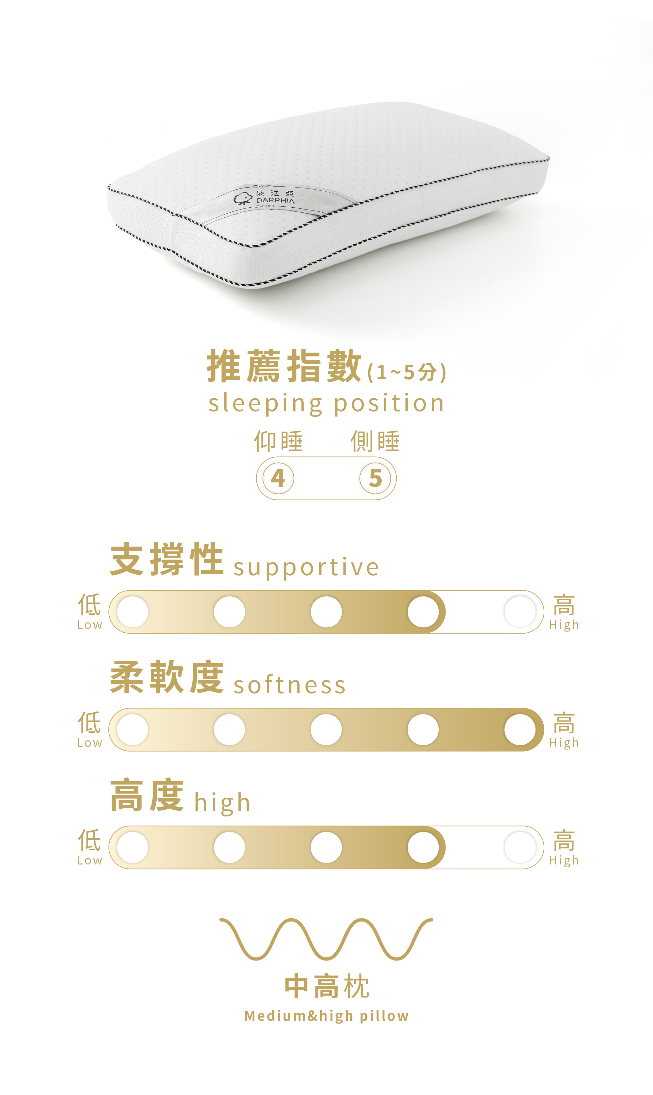 高度適中偏高,完美支撐頸部