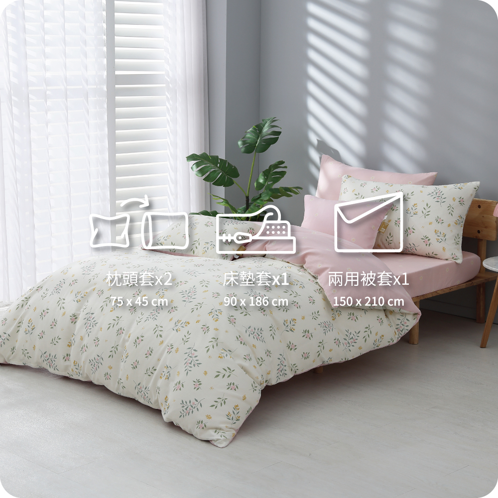 朵法亞 Darphia|花粉_純棉換洗四件套( 床包 + 被套 + 枕套 )_學生租屋住宿_標準單人