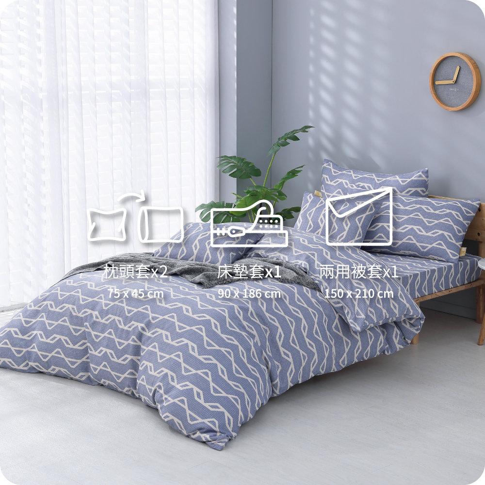 朵法亞 Darphia|蒼藍_天絲棉換洗四件套( 床包 + 被套 + 枕套 )_學生租屋住宿_標準單人
