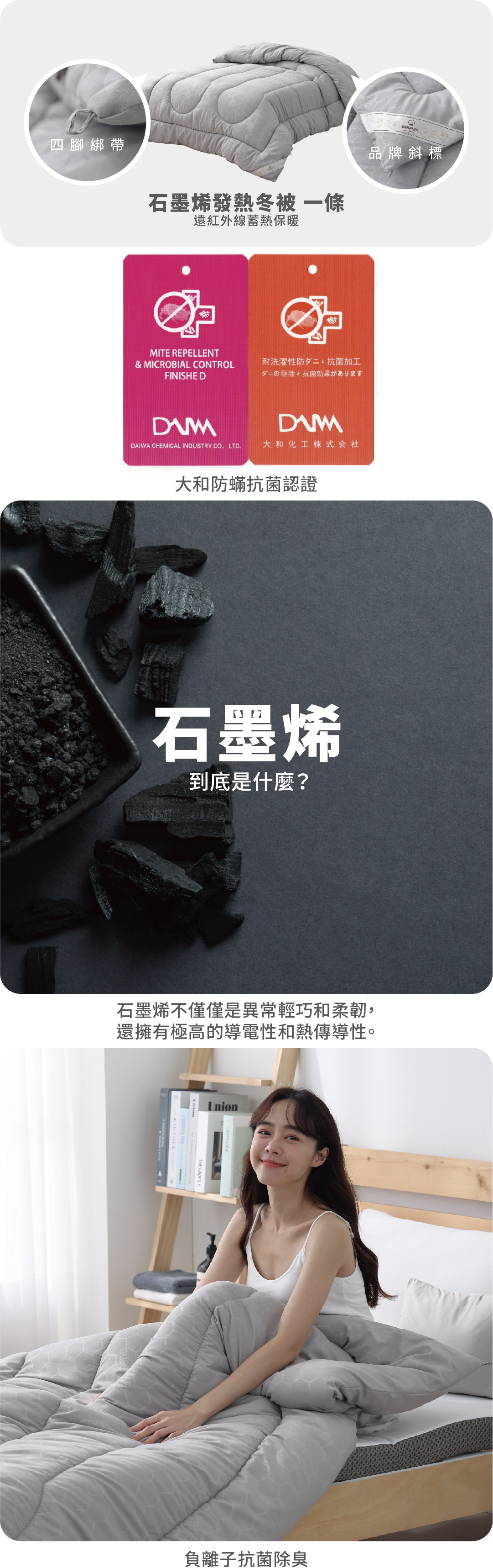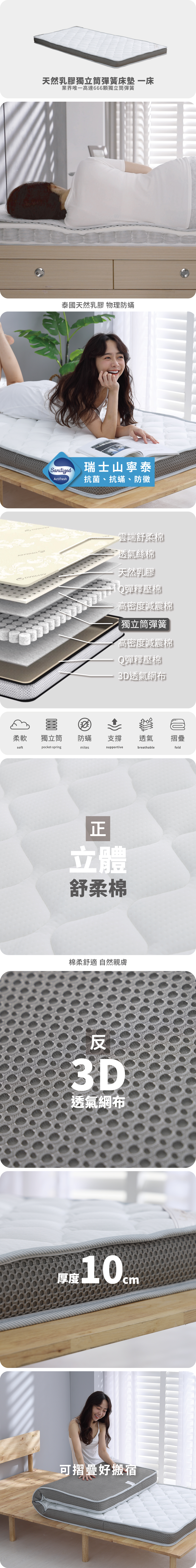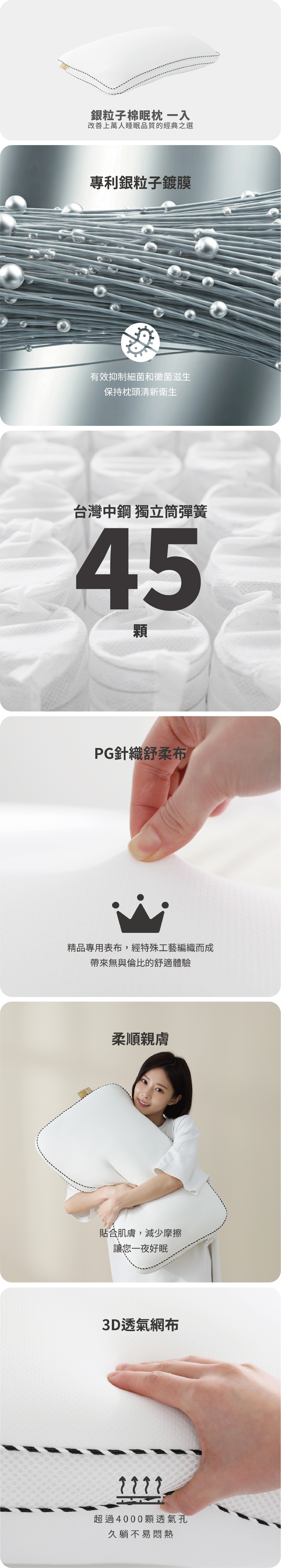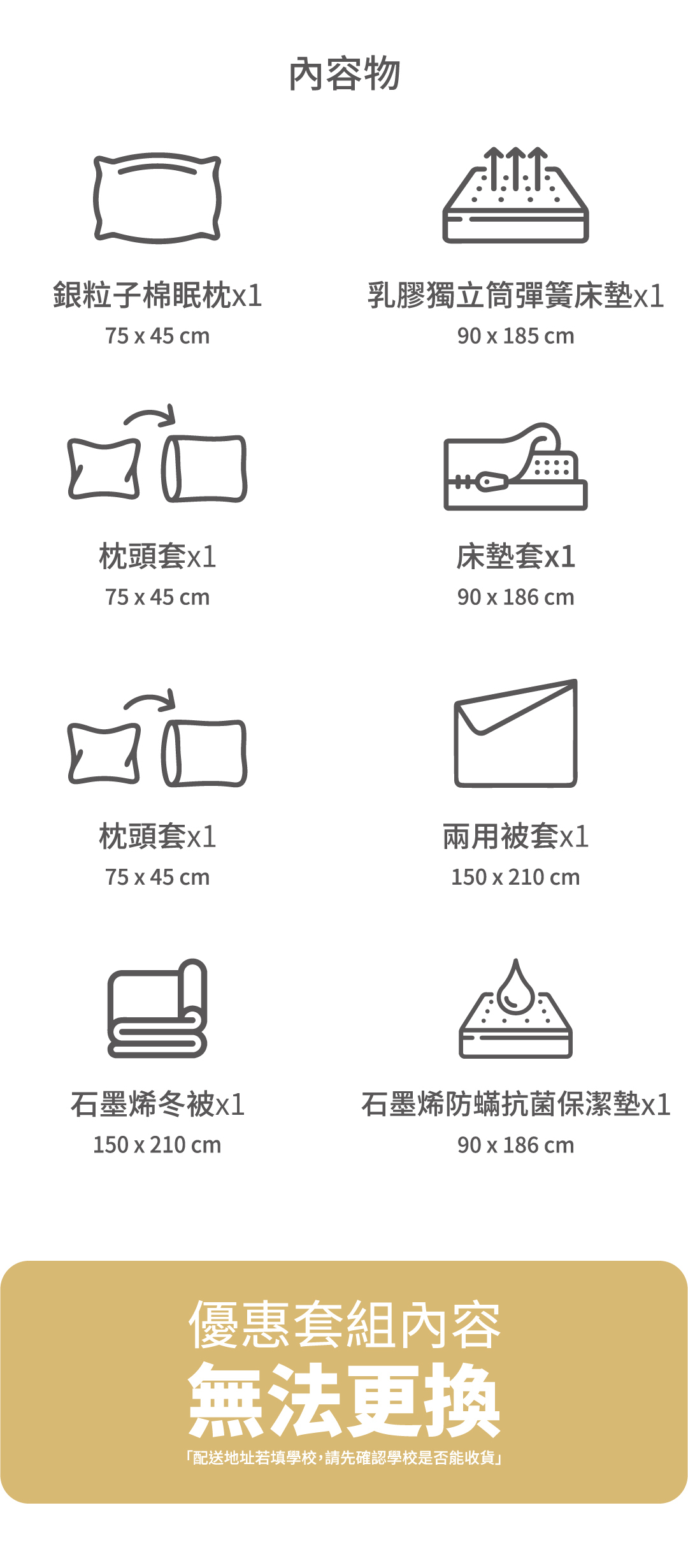 銀粒子棉眠枕+天然乳膠獨立筒彈簧床墊+石墨烯冬被+防蟎抗菌保潔墊
