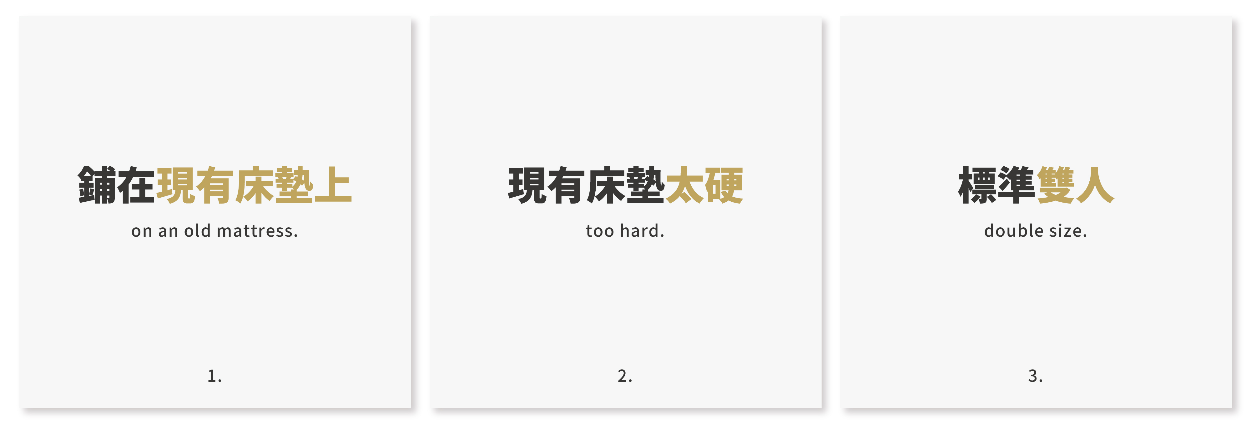 記憶棉 + 硬梆梆的舊床墊 = 完美支撐性