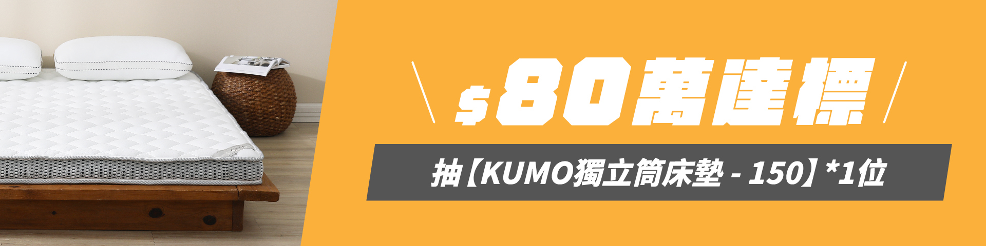 •累積金額達80萬:【KUMO獨立筒床墊-150】抽出一位