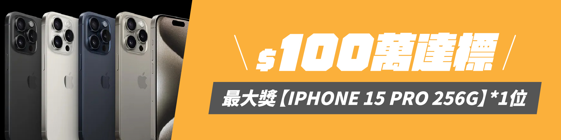 •累積金額達100萬:【最大獎IPHONE 15 PRO 256G 一台隨機,總監親自送到家】抽出一位