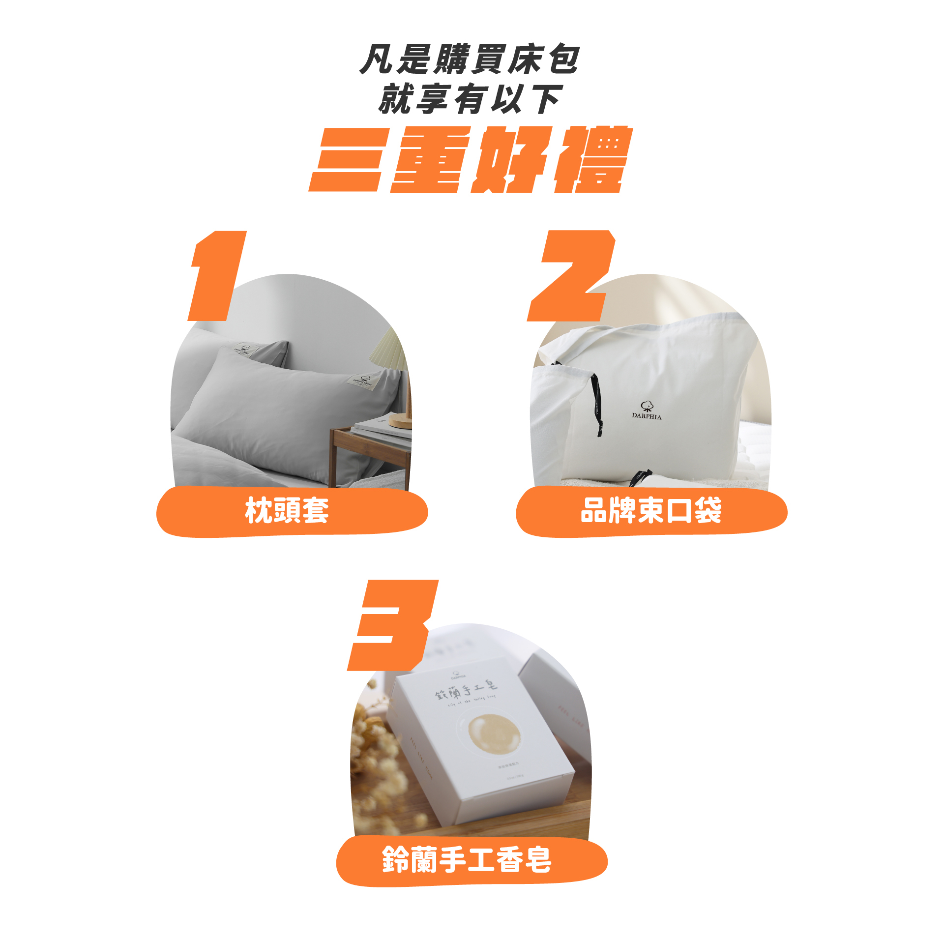 買床包送枕套*1個/組+朵法亞帆布袋+鈴蘭香皂
